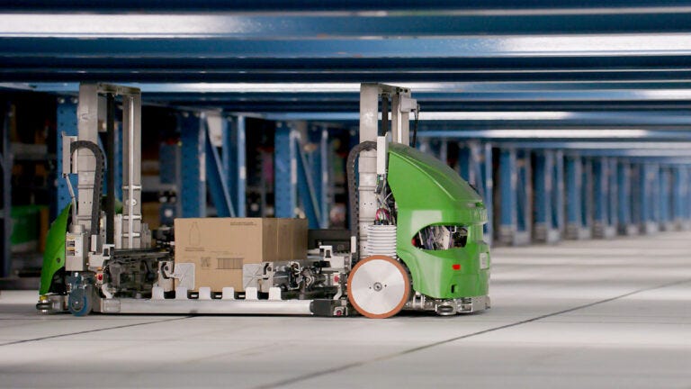 Amazon’s approach popularized goods-to-person workflows. Instead of people walking miles per shift, robots bring inventory to stationary workers. Productivity rises because motion is eliminated, not because humans are replaced.